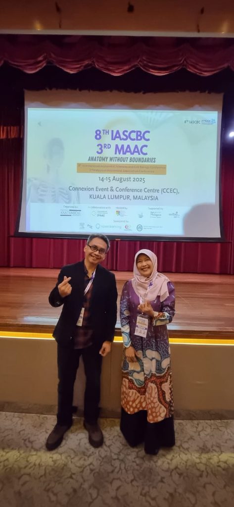 Departemen Anatomi FKKMK turut berkontribusi dalam 8th International Anatomical Sciences and Cell Biology Conference (8th IASCBC) dan 3rd Malaysian Anatomical Association Conference (3rd MAAC) yang mengusung tema “Anatomy Without Boundaries”. Konferensi internasional ini berlangsung di Conexion Conference & Event Centre (CCEC), Kuala Lumpur, Malaysia, pada tanggal 13-15 Agustus 2025 dan menjadi ajang ilmiah bergengsi yang mempertemukan para akademisi, peneliti, serta praktisi dari berbagai negara. Topik yang diangkat dalam konferensi ini meliputi berbagai aspek anatomi seperti pendidikan anatomi, anatomi perkembangan, anatomi klinis dan terapan, donasi tubuh dan etika anatomi, serta bidang lintas disiplin seperti biologi sel, ilmu saraf, kanker, dan pengobatan regeneratif.